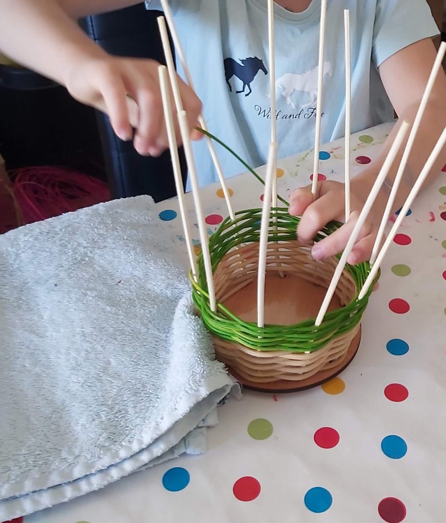 • Körbchen/Stiftehalter aus Peddigrohr flechten